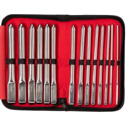 Das Dilatator-Set ist aus Stahl. Wird in einem schwarzen Kunstleder-Etui geliefert.