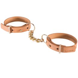 Die kleinen Handschellen gleiten sanft um die Handgelenke und sind leicht verstellbar. Die schöne goldfarbene Metallkette hält die Fesseln beim Spiel zusammen und rundet das Bild eines BDSM-Sexspielzeugen sowie eines Schmuckstücks perfekt ab.