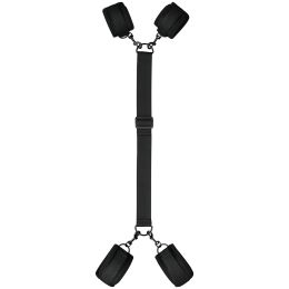 Die Manschetten und der Riemen sind mit schwarzen Karabinerverschlüssen ausgestattet, die für eine breitere BDSM-Erkundung leicht an anderen Bondage-Accessoires angebracht werden können.