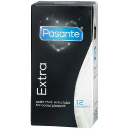 Pasante Extra sind dicke Kondome mit extra Gleitmittel sowohl innerhalb als auch außerhalb des Kondoms.