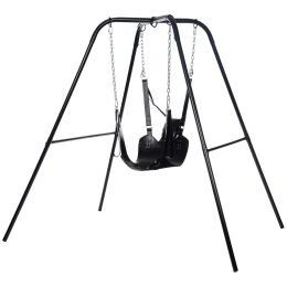 Genieße neue sexuelle Erfahrungen im Wohnzimmer, ohne die Decke, Wände oder Türrahmen zu beschädigen mit der Strict Extreme Liebesschaukel und Ständer. Hergestellt aus robustem Metall und einfach zu montieren. Sie misst 208 cm in der Höhe und hat eine Grundfläche von 215 cm x 147 cm.